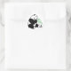 Um Urso Panda segurando algumas folhas de bambu com o símbolo chinês de beleza no canto inferior direito.