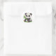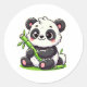 Ilustração de um panda sentado confortavelmente e balançando em bambu com um sorriso lúdico e bochechas rosadas.