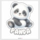 Este grande adesivo de berçário apresenta um adorável panda estilo cartoon com uma expressão alegre e doce. O panda é representado sentado com as pernas espalhadas, dando-lhe um olhar lúdico e convidativo. Ele tem o padrão clássico de pele preto-e-branco, com olhos grandes e expressivos e uma pequena língua cor-de-rosa se destacando, acrescentando seu encanto. O pelo macio e liso do panda faz parecer fofinho e abraçável. Abaixo do panda, a palavra "PANDA" é escrita a negrito, em letras arredondadas, correspondendo perfeitamente ao design bonitinho e amigável.