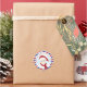 Encerre o correio ou o seu presente de férias com um bonito selo redondo que apresenta as bordas de um envelope de correio aéreo em azul escuro e vermelho. Tem uma ilustração do Pai Natal num lenço acolhedor e chapéu de inverno. Papais noeis gostam de usar correio de caracol. Ele é um tipo de cara antiquada! O texto personalizável total lê AIR MAIL NORTH POLE POSTO OFFICE (ESCRITÓRIO DE CORREIO DO AR)