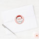Este design de autocolante apresenta Papais noeis alegres voltados para um fundo cor-de-rosa com a saudação "Feliz Natal" no Papai noel.
