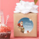 Este design de natal vintage é de Papais noeis na véspera de Natal enquanto ele entrega brinquedos a todos. Ele está prestes a descer a chaminé num telhado de neve. Ele tem o saco de brinquedos e deixou um deles no telhado. O céu noturno é cheio de estrelas com uma estrela brilhante ao fundo. O texto pode ser personalizado para se adequar ao seu gosto.