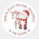 Etiquetas de Natal para entrega especial do Polo Norte para presentes infantis, personalizadas com o nome do seu filho. O texto é escrito em tipografia química e é totalmente editável. Esta ilustração de aquarela tem Papai Noel com sua rena e um cardeal.
