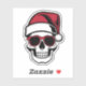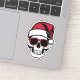 Papais noeis com etiqueta de crânio para o Natal gótico. Gótico engraçado minimalista preto e adesivos vermelhos. Decoração estética de crepmas. Crânio com chapéu de Papai Noel e adesivo de ilustração de óculos escuros.