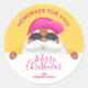 Crie adesivos para etiquetar suas mercadorias caseiras de Natal, biscoitos, doces, doces, doces, favoritos para festas e muito mais com Papais noeis ensolarados em um boné de beisebol rosa-quente e sua mensagem em letras quentes.