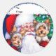 Papais noeis tem um lugar doce para Yorkies e abraça seus dois Yorkshire Terriers na Árvore de Natal. Papais noeis sabem que seus amigos furiosos estarão lá para recebê-lo em casa quando todas as doces e presentes tiverem sido entregues na véspera de Natal.