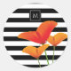 Ouro de laranja e papoila vermelha pop contra listras brancas e pretas chic para um estilo ousado de verão elegantemente terminou com seu monograma dentro um quadrado preto pequeno e clássico. ♡ Idyllfire