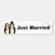 Grande autocolante no vidro traseiro para tudo que você weds recentemente. O recem casados no texto preto corajoso e em gráficos doces de dois pinguins vestiu-se como noivos. Decoração bonito para recentemente o carro do wed.