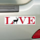 Um esticador divertido para os caçadores de veados com a palavra amor em letras grandes e vermelhas e uma silhueta de muitos pontos em substituição ao O.