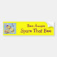 Este Bumper Sticker é decorado com uma pintura de uma abelha e as palavras "Bee Aware - Spare Aquela Abelha>"