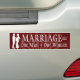 Casamento é igual a um homem mais uma mulher decalque adesivo para-choques. Mostre seu apoio ao ideal conservador do casamento tradicional entre marido masculino e mulher. Fundo vermelho escuro com letras brancas e imagem de sombra de casal grávida.