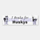 Parada Animal I Brake for Huskys Head and Tails Bumper Sticker é uma maneira divertida de mostrar o seu amor pelos animais durante a condução. Nosso design bonitinho mostra nosso filhote original de frente e de trás de ambos os lados das palavras, Eu Brake for Huskys com as palavras Animal Parade em um roxo claro no fundo. Faça alguém sorrir hoje com nossos animais brancos.