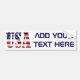 O texto dos EUA e a bandeira dos Estados Unidos da América, embutidos em cada carta. Adesivo de para-choque. Personalizável. Você pode alterar ou excluir o texto modelo.
