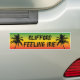 Rasta flag coloured customisable bumper sticker, with the slogan FEELING IRIE, and black palm trees. All text is customisable, so you can add your own name and slogan