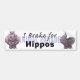 Parada Animal I Brake para Hippos Head and Tails Bumper Sticker é uma maneira divertida de mostrar o seu amor pelos animais enquanto conduzia. Nosso design bonitinho mostra nosso dromedário original de frente e de trás de ambos os lados das palavras, Eu Brake para Hippos com as palavras Animal Parade em um roxo claro no fundo. Faça alguém sorrir hoje com nossos animais brancos.
