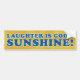 Fundo solar amarelo e laranja, texto azul com contornos brancos que lê riso é sol de Deus.