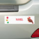 Adesivo de para-choque com pássaro de Natal e bolas de Natal em fundo branco. O texto pode ser personalizado. Vamos espalhar boas vibrações por aí!