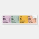 O autocolante no vidro traseiro com o pensador da palavra criou com os elementos de mesa periódica.