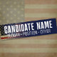 Use esta modelo para digitar seu slogan em um adesivo patriótico para-choques! Adicione um nome de candidato e um slogan para um adesivo de campanha tipo um para-choques.