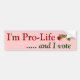 Eu voto o autocolante no vidro traseiro da Pro-Vida, a única rosa vermelha no campo do rosa deixa outro na estrada saber que você representa a santidade da vida humana, e que você deixa sua voz ser ouvido no tempo da eleição. Escolha a vida da concepção à morte natural.