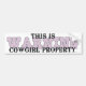 Aviso. Esta é propriedade da vaqueira. Se você está tentando proteger seu material ou apenas está tendo pouco divertimento, obtenha o slogan da propriedade da vaqueira em t-shirt, em autocolantes no vidro traseiro, em botões, ou em outros artigos e coloque-os em qualquer lugar que você está indo estacar sua reivindicação. Vaqueiro. Camionete. Tenda. Você mesmo. Vem em estilos do cavalo e do texto.