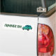Um adesivo engraçado da Summer Om. Carro hippie azul com elementos mandala desenhando no adesivo.