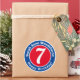 Vinheta de aniversário feliz, que é decorada com o nome do receptor, a mensagem "Parabéns" e a idade da criança - 7 anos. Aniversário presente.
