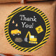 Celebre o dia especial do seu filho com este obrigado de festa de aniversário de garoto personalizado que você coloca com um tema de construção adorável. Cada autocolante tem um caminhão de lixo e escavador trabalhando juntos em um local de construção de estradas. Há também cones de trânsito laranja e listras amarelas e pretas. Adicione a idade do seu filho para um toque especial! Este adesivo de criança faz um excelente personalizado para a sua festa de festa de aniversário!