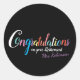 Vinheta personalizada de aposentadoria de professores. O adesivo diz, "Parabéns na sua aposentadoria" e inclui espaço para o nome do professor. Uma forma adorável de família, amigos ou alunos decorarem envelopes de cartão ou presentes para um professor aposentado. Cartões de correspondência e presentes também estão disponíveis neste design cor de giz arco-íris divertido.