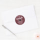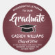 Adicione um toque personalizado elegante a convites para graduação em faculdade ou segundo grau, anúncios e favoritos para festas com marrom personalizado na moda e adesivos redondos brancos. Toda a redação neste modelo é simples de personalizar para selagens de envelopes ou etiquetas de obrigado. O design moderno apresenta um fundo vermelho violento e escuro, boné de conselho de argamassa preto e branco, caligrafia de na moda e tipografia de safra clássica. Estes adesivos adicionam um toque único de conclusão a uma celebração de graduação. Parabéns ao formando!