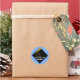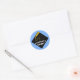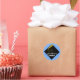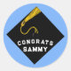Adesivos clássicos de presente de formatura, etiquetas de festa e selos de envelope com chapéu de formatura preto com borla dourada em fundo azul claro. Edite o texto para adicionar o nome do formando da turma de formandos.