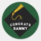 Adesivos criativos de presente de formatura e etiquetas de lembrancinhas de festa com chapéu de formatura preto com borla dourada em fundo verde. Para personalizar, edite o texto para adicionar o nome dele ou dela.