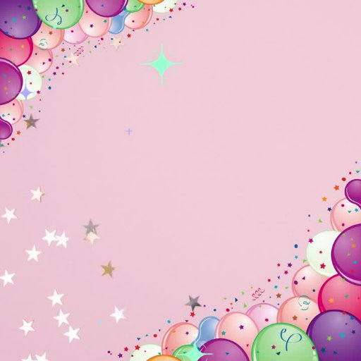 O desenho animado roxo e cor-de-rosa, branco, segurando balões com adesivos de aniversário para selar bolsas ou convites de festas de aniversários.