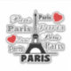 Ilustração de design de texto de Paris com Torre Eiffel e decoração de corações vermelhos