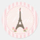 Design de bebê adorável e super giro com uma Torre Eiffel marrom com uma fita rosa no topo. Flores cor-de-rosa doces na base das torres, bem como listras cor-de-rosa e outros enfeites delicados.