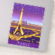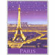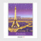 Sticker numa ilustração impressionista de Paris contra um céu roxo estrelado, com a Torre Eiffel iluminada em amarelo ouro