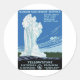 Poster para o Parque Nacional Yellowstone, Wyoming/Montana, EUA ( 1938 ) National Park Service - Old Faithful é um geyser cone localizado em Wyoming, no Parque Nacional Yellowstone, nos Estados Unidos. O nome da velha fé foi dado em 1870 durante a Expedição Washington-Langford-Doane e foi o primeiro geyser do parque a receber um nome.
