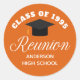 Um adesivo de festa de reunião de classe personalizada em laranja e branco para um segundo grau, faculdade ou universidade. Personalize com seu nome de escola e sua classe de graduação sob a elegante caligrafia para presentes personalizados de celebração de alunos excelentes.
