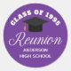 Um adesivo de festa de reunião de classe personalizada em roxo e branco para um segundo grau, faculdade ou universidade. Personalize com seu nome de escola e sua classe de graduação sob a elegante caligrafia para presentes personalizados de celebração de alunos excelentes.