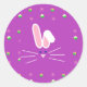 é um adesivo de Páscoa que tem um belo rosto de coelho, ovos escondidos e uma cauda de algodão na grama.