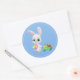 Vinheta de férias de páscoa mostrada com um lindo impressão de Coelhinho de Páscoa. Cor Azul Personalizar ou comprar como está.