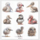Adesivos de Passarinhos. © Escolha um Adesivo. Esta folha de adesivos tem uma variedade de passarinhos, incluindo um flamingo, uma avestruz, um pelicano, um patinho, uma garça, um papagaio-do-mar, uma coruja e mais.