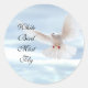Um adesivo redondo para combinar o nosso convite "Pássaro Branco" com uma imagem de uma pomba branca num céu azul turvo e as palavras "Pássaro Branco deve Voar" em escrita negra. Os pombos, normalmente brancos, são símbolos de amor, paz ou como mensageiros. A música "White Bird" foi escrita e executada em 1969 pelo grupo de rock de São Francisco. É um belo dia. Ver vinheta de vinil com corte personalizado, Ver convite correspondente, confetti, bolsa de favor, caixa de favor, sacos de presente, etiqueta de presente, etiqueta e papel de embalagem. Veja toda a coleção Psychedelic 60s Sticker nos CONVITES | Seção Stickers & Labels