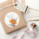 Vestidos de casamento com pássaro laranja de flores do paraíso. Personalize o texto do roteiro azul, na letra moderna manuscrita, para dizer "obrigado" aos convidados para participar do casamento. Os adesivos redondos vêm em dois tamanhos. Adicione para favorecer pacotes na recepção, chá ou outro evento. Este design é destinado à forma de adesivo redondo, mas pode funcionar em outras formas. Não deixe o texto se aproximar das bordas!