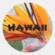 Adesivos redondos para usar como selos de envelopes e muito mais que exibam a foto de uma ave tropical havaiana de flor de Paraíso, comumente conhecida como Flor de Crane. Um design floral divertido! Selecione o tamanho do adesivo.