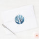 Pintor azul e aquarela de inverno de uma árvore branca com fundo de neve. Arte original com tema de Natal. Natal azul e branco.