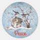Personalize este adesivo único "Um tipo"! Estas Adoráveis Pássaros Pesados Continuam A Bater Neve Nos Ramos Na Cabeça Do Amigo Bonito De Coelhinho! Pintura de arte original de Kerry Miller. Aproveite!
