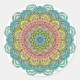 uma mandala de cor pastel em rosa, azul, verde e amarelo, com elementos florais