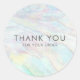 Obrigado elegante faux opal shell você cola em tons bonito pastel de rosa, azul, verde e amarelo com sua mensagem personalizada. Ideal para adicionar a embalagens para designers de joalharia e outras pequenas empresas.