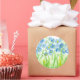 Um adesivo bonito decorado com um jardim de flores de linho azul macio e folhas de cor verde primavera pintadas em aquarela.